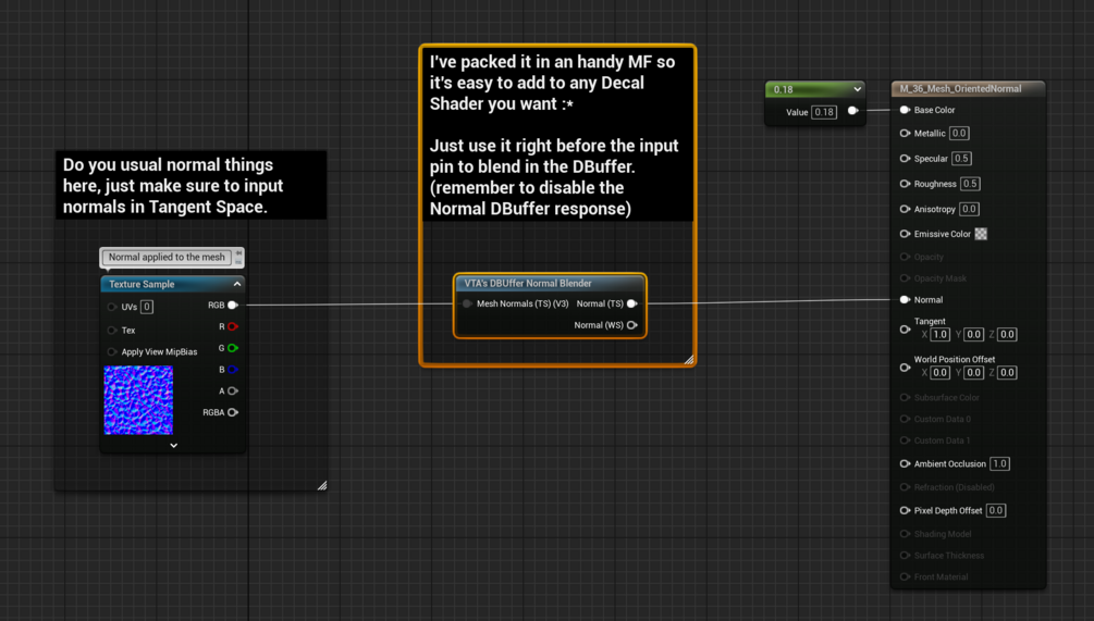 You can head here ( https://wenceslas.gumroad.com/l/pkbkj ) if you just want to download his function :)A Sample Project containing a showcase of the DBuffer Oriented Normal pipeline, with two Material Functions ready to be ported in your project for quick implementation.